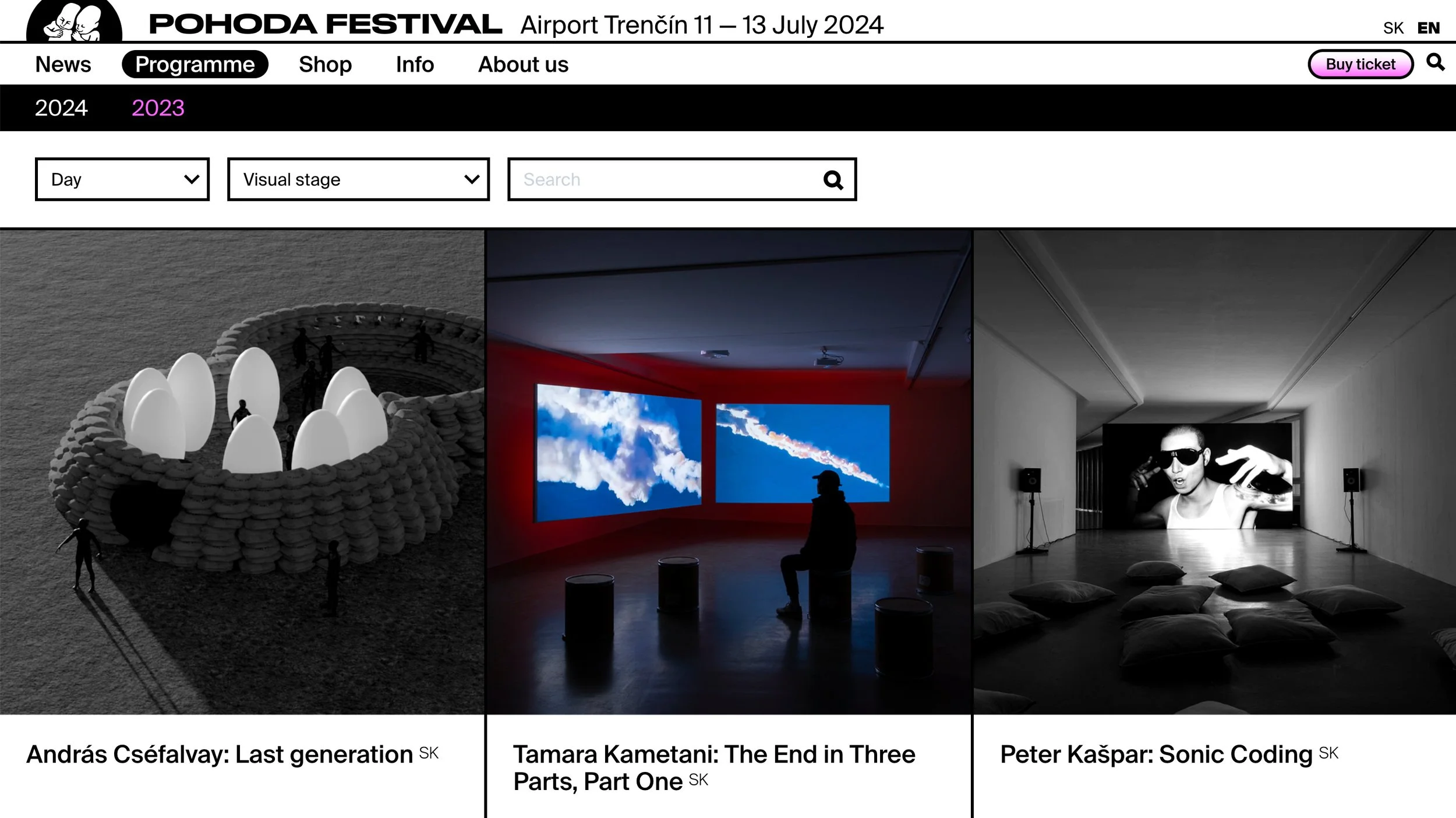 July 4, 2023 My work The End in Three Parts, Part One will be shown at Pofoda Festival in Trenčín, Slovakia July 12, 00:00Pohoda Festival, Visual StageMartinus Stagehttps://www.pohodafestival.sk/